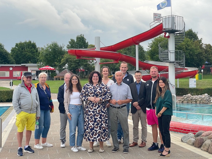 Europaabgeordnete Lena Düpont besucht Erlebnisbad Dransfeldwww.lena-duepont.euAm Donnerstag, den 24. Juli 2025, besuchte die Europaabgeordnete Lena Düpont auf Einladung der CDU die Samtgemeinde Dransfeld. Im Mittelpunkt des Treffens stand die Zukunft des Erlebnisbades, dessen Unter- und Instandhaltung die Kommune vor finanzielle Herausforderungen stellt.Marco Gerls, Leiter des Hauptamtes der Samtgemeinde Dransfeld, führte in die Geschichte und die aktuelle Finanzsituation des Bades ein. Das jährliche Defizit beläuft sich derzeit auf rund 250.000 Euro. Gemeinsam mit Bademeister Tobias Kämmerer besichtigten die Teilnehmenden das Erlebnisbad. Dabei wurde deutlich, dass trotz zahlreicher Investitionen ? etwa dem Bau eines neuen Kinderbeckens und der in Eigenleistung des Fördervereins gestrichenen Rutsche ? auch künftig Maßnahmen notwendig sind, um die Attraktivität des Erlebnisbades zu erhalten. Düpont zeigte sich beeindruckt vom Engagement vor Ort und kündigte an, die Chancen auf europäische Fördermittel für das Erlebnisbad zu prüfen."Für uns als CDU in der Samtgemeinde Dransfeld ist klar: Wir stehen geschlossen hinter unserem Erlebnisbad! Das Bad ist nicht nur ein Ort der sommerlichen Erholung und sportlichen Betätigung, sondern ein wichtiger Bestandteil der Lebensqualität in unserer Region.", erklärt Anika Bittner, Vorsitzende des CDU Samtgemeindeverbandes Dransfeld. "Wir danken dem Förderverein des Erlebnisbades, der hier Großartiges leistet. Dieses Engagement zeigt, wie sehr das Erlebnisbad den Menschen am Herzen liegt."Im Anschluss trafen sich die Mitglieder der CDU im Restaurant Panoramico in Dransfeld zum politischen Austausch mit Lena Düpont. Dabei ging es nicht nur um den Krieg in der Ukraine sowie die Bedrohungslage durch Russland, sondern auch die aktuellen Herausforderungen in den Beziehungen zu den USA.Foto (v.l.n.r.): Frank Scheidemann, Hella Scheidemann (CDU-Fraktion Samtgemeinderat), Helgo Schröder, Anika Bittner, Lena Düpont MdEP, Alina Mielke, Alfred Schmidt, Ernst von Stockhausen, Marco Gerls, Tobias Kämmerer und Jasmin Smilge